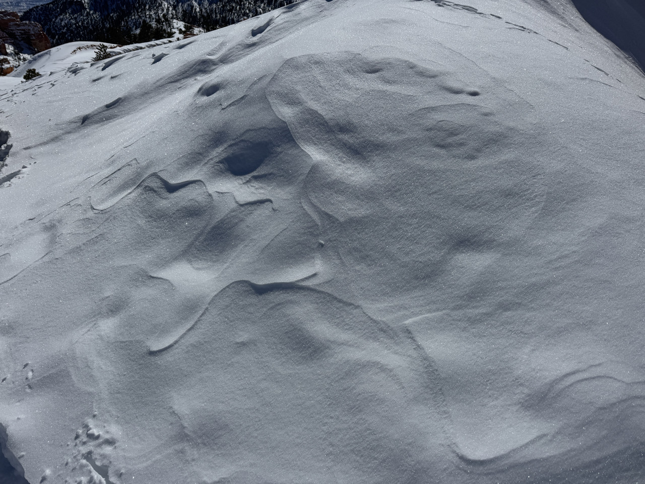 정상에 올라왔고 누군가가 만들어둔 눈오리에 마음이 따스해졌다.