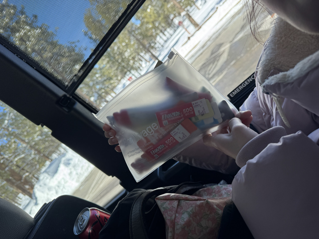 버스로 돌아왔는데, 센스있으신 기사님께서 좌석 몇 칸마다 쓰레기통을 달아두셨다.